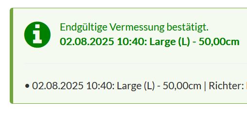 Zwei Vermessungen - Hund war zu diesem Zeitpunkt bereits 4 Jahre alt - keine Kontrollvermessung!